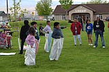 Children play with a rubber ball in Hund Memorial Park Saturday, surrounded by Children’s Day …