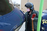 Flight paramedic Lindsay Nelson plugs the starter motor into the helicopter at the Life Flight …