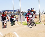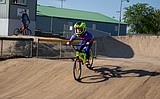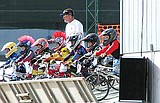 BMX riders prepare to launch during a race at the Larson Recreation Center track last …