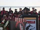Desert Oasis’ Elizabeth De Jesus Flores gives her speech to the student body and family …