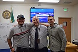 Community Court graduate Gerry Castaneda, left, stops for a photo with District Court Judge Brian …