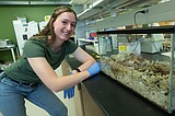 Brietta Latham, a doctoral student in WSU’s School of Molecular Biosciences, stands next to a …