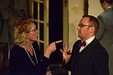 Mrs. Peacock (Victoria Drake) left yells at Professor Plum (Justin Martin) right after it is …