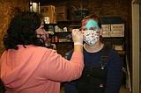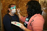 With a little face paint, Stephanie Carl (right) turns Paula Robertson (left) into a zombie …