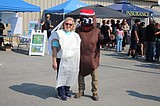 Paula, right, and Bob Davis dressed as toilet paper and poo respectively to promote proper …