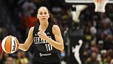 Seattle Storm guard Sue Bird (10) dribbles the ball against the Las Vegas Aces during …