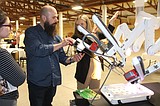 Adrian Palacio removes a tool module from the da Vinci medical robot.