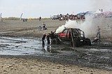After a false start, getting stuck in the mud before reaching the starting line, Brandon …