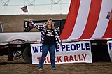 Freedom Ride and Rally organizer Leah Johnson waves a flag in front of an impromptu …