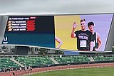 Moses Lake junior Hunter Blackman waves on the video board at the USA Track & …