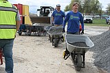Volunteers and Quincy city workers head out with loads of rock to be spread on …