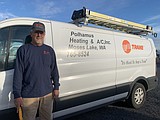 Polhamus Heating & A/C Technician Dave Grant beside one of the company vans. Grant, and …