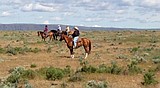 Gaynor Edwards, on horseback, helps round up cattle near Coulee City in 2013.