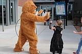 The Moses Lake Museum & Art Center mammoth gives a high-five to a museum visitor. …