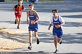 A pair of Warden runners dash along at the Moses Lake Cross Country Invitational at …