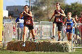 Runners leap over bales of hay at the Moses Lake Cross Country Invitational Oct. 12 …