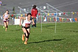 Moses Lake senior Paige Perkins (143) runs uphill during the Moses Lake Invitational at the …
