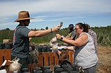 Lisa Allsbrook, right, is handed the next set of fireworks shells in the sequence. Alex …