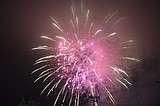 A firework lights up a fog-filled sky on Lions Park in Othello during the long-delayed …
