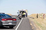 A van sits in the middle of Division Street Friday after a rollover crash in …