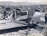 This photo shows the wreckage of a P-39Q which crashed near Wahatis Peak. The pilot, …