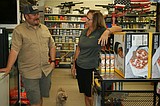 Surrounded by fabric, Stitch N Time owner Sophie Mattson rings up a sale.