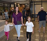 Mandy Brink of Almira looks around the new Almira School with her children Sophie, 4, …