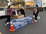 Cierra Devine (left) loads a donated turkey into the cart during the Samaritan Healthcare turkey …